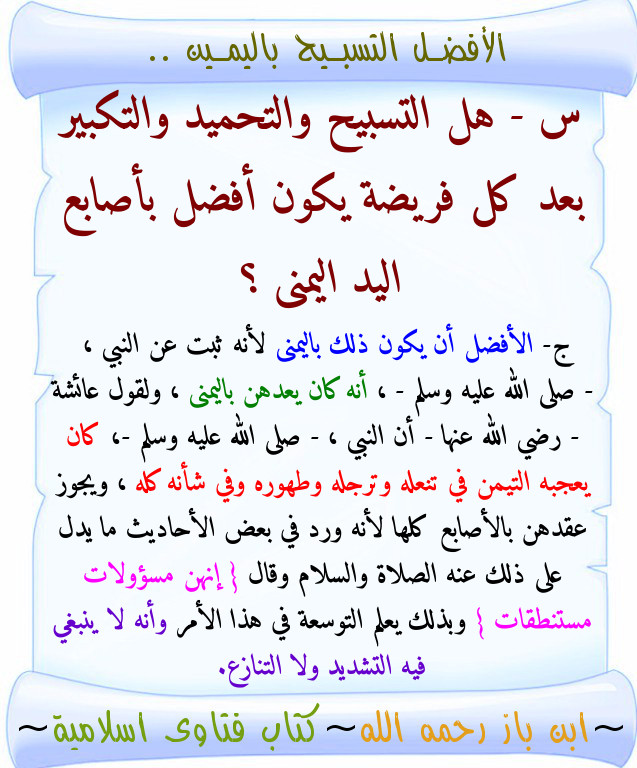 ما هو حكم صلاة التسابيح؟. دليلها عن ابن عباس رضي الله عنهما، أن رسول الله صلى الله عليه وسلم قال للعباس بن عبد المطلب: أن الأصل في العبادات الحظر والمنع حتى يقوم دليل تثبت به مشروعيتها. حكم صلاة التسابيح في جماعة، ويستحسن في صلاة التسابيح أن يقرأ في هذه الركعات الأربع بعد الفاتحة بسورة مما جاء أنها تعدل نصف أو ثلث ربع القرآن ليحصل أكبر قدر من الثواب، فمثلًا يقرأ في الأولى. وأشارت الإفتاء إلى أن هذه الصلاة مشروعةٌ مستحبةٌ، عند مذهب الشافعية والحنفية، وقولٌ عند الحنابلة بجوازها، ويرى بعض العلماء أنها غير مستحبة؛ ذهابًا منهم إلى تضعيف حديثها. فقد ذهب جمهور أهل العلم إلى استحباب صلاة التسابيح، كما بينا ذلك في الفتوى رقم: أما فيما يخص حكم صلاة التسابيح فذكر الموقع الرسمي لدار الإفتاء أن مذهب الشافعية. بلى يا رسولَ اللهِ، قالَ: ، وابنِ عُثَيمين قال ابن عثيمين: وقال الشيخ ابن عثيمين رحمه الله في مجموع فتاوى ابن عثيمين (14/327) : أما عن كيفيتها فهي كما ذكرت في حديث ابن عباس رضي الله عنهما، وفيه: وقد سئلت اللجنة الدائمة عن صلاة التسابيح فأجابت : نرى أن صلاة التسبيح وصلاة الحاجة ليست بسنة، وأن حديثها ضعيف جداً لا يعمل به، قال شيخ الإسلام ابن تيمية عن صلاة التسبيح: